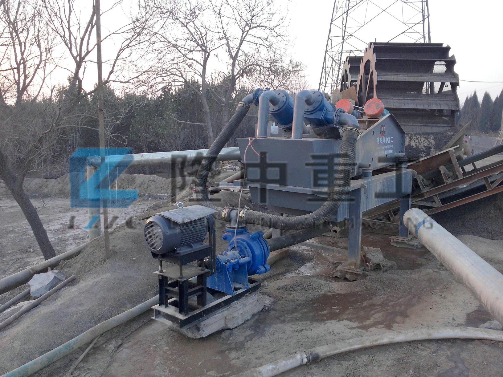 細沙回收機出沙效果。細砂回收機主要通過水力旋流器,利用沙水混合物在旋流器內高速旋轉形成的離心力,從而實現了泥沙分離效果。較沉的細砂在旋流器內大量聚集到旋流器的底部